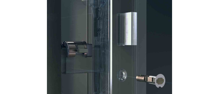 | Plus de clés, plus de poignées à tourner - il suffit simplement de maintenir le bouton du transpondeur ou la SmartCard devant la plaque-béquille. Il suffit ensuite de pousser la poignet et la porte s’ouvre. Si vous y êtes autorisé. |